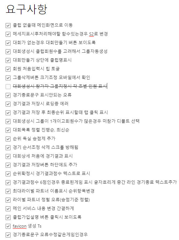 실제로 아래 화면은 제가 사이트를 어느정도 만든 다음에 통합테스트를 하면서 추가로 나온 수정사항들입니다.