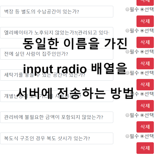 사용자가 새로운 row를 추가하거나 삭제할 수 있는, 즉 가변적으로 input radio가 추가/삭제 되는 형태입니다.