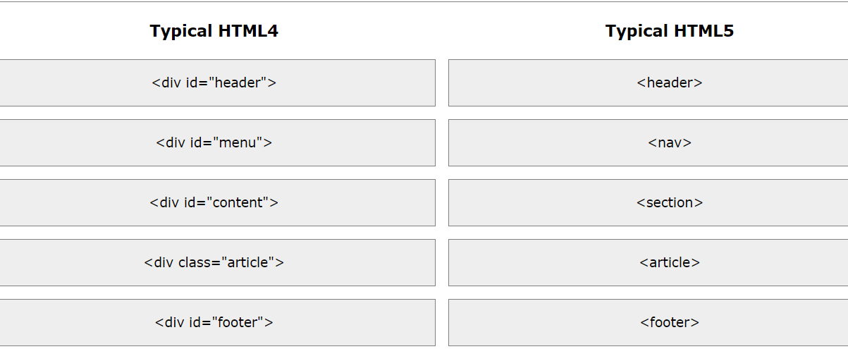 HTML4에서는 각 콘텐츠의 의미를 구분하기 위해 <div id="header">와 같이 고유한 ID를 이용했습니다. 그런데 이로인해 검색엔진이 정확하게 웹페이지 콘텐츠를 구분할 수 없었습니다. 그래서 새로운 HTML5의 의미있는 태그(요소)를 사용하면 검색엔진이 쉽게 콘텐츠를 구분할 수 있습니다.