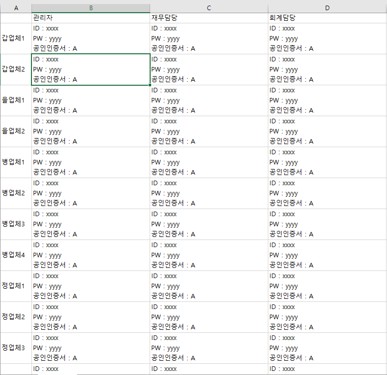 갑-을-병-정 업체 중