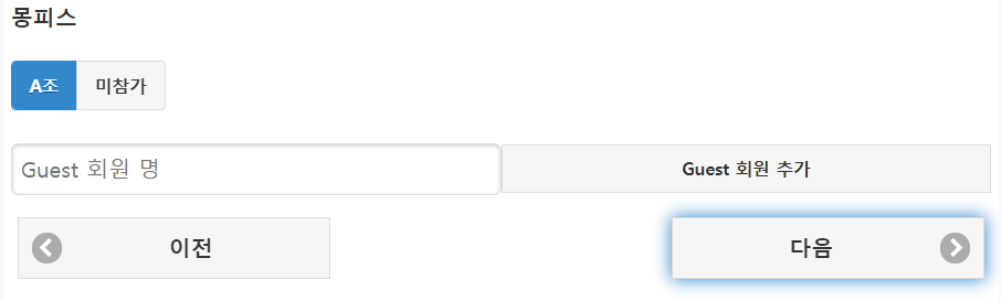 참고로 위의 기능은 사용자가 다음 버튼이나 이전 버튼 클릭시 페이지(request 요청) 이동 없이 Javascript 만으로 작동합니다. 즉, 화면을 구성하는 파일이 3개가 아니라 1개의 파일이라는 거죠. 데이터는 가장 마지막에 '완료'를 클릭했을 때 한번에 저장하는 방식입니다.