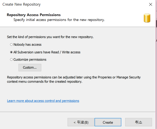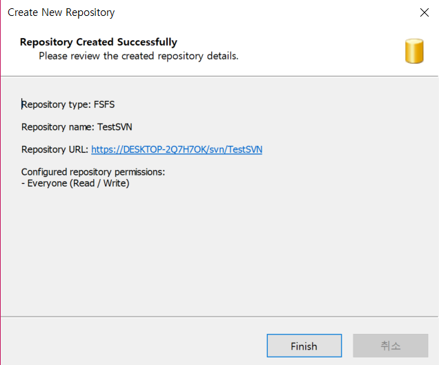 이렇게 생성한 SVN은 프로젝트 내 문서를 여러사람이 공유해서 작업할 때 사용하면 됩니다.