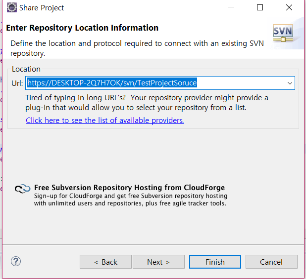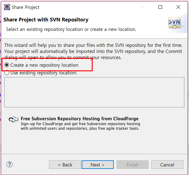 SVN Repository location을 선택합니다.