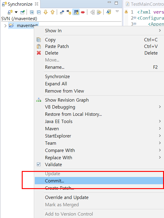 프로젝트 마우스 우클릭 후 Commit합니다.