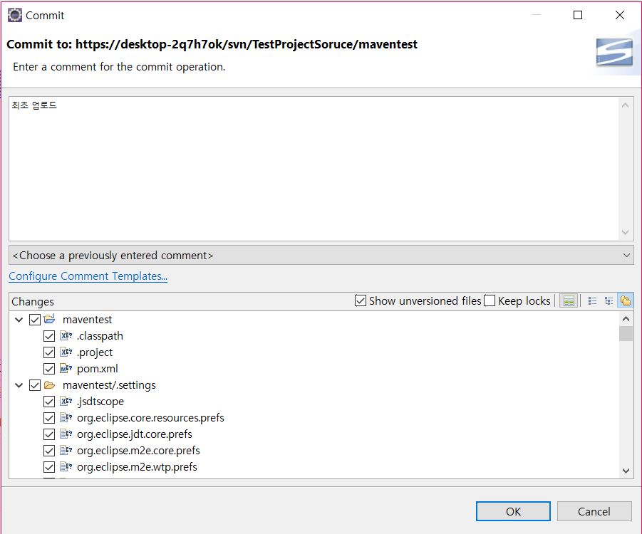 이제 소스를 수정할 경우 변경된 소스만 Commit하면 됩니다.